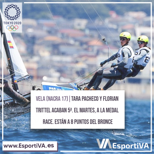 El atletismo entró en competición en el ecuador de los JJOO olímpicos, con una magnífica segunda posición de Ana Peleteiro en la clasificación de triple salto. Además, Tamara Echegoyen y Paula Barceló subieron a la segunda plaza temporal en la clasificación general de vela (49er FX), y España venció a Australia para clasificarse a cuartos de final de waterpolo como líderes de grupo.