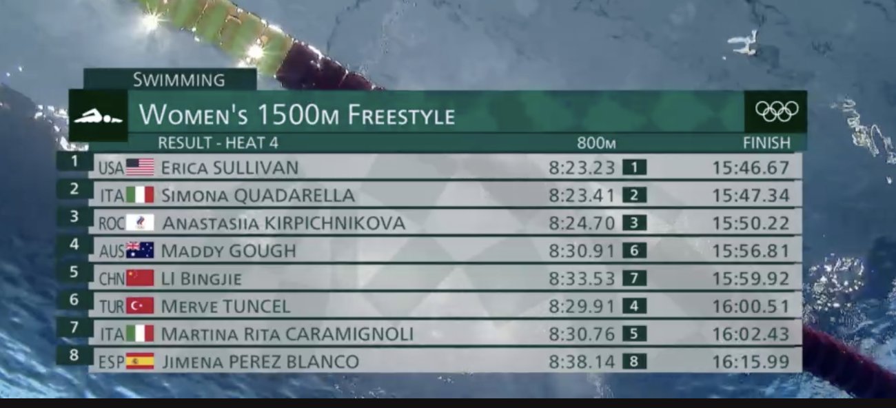 31/07/21 | NATACIÓN | Finalizó la natación para la delegación femenina española, que se despide de la capital nipona con un diploma olímpico de Mireia Belmonte, cuarta en 400 estilos en un arrebato de coraje y amor propio, compitiendo además en 800 y 1.500 libre, y en la tercera posta del relevo de estilos. Además, semifinales para, Jessica Vall en los 200 braza y África Zamorano en los 200 espalda (que también dobló en el 200 estilos).También compitieron Jimena Pérez (800 y 1.500 libre), Marina García (200 braza) y Lidón Muñoz (50 y 100 libre).