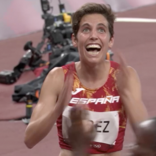 Marta Pérez está de dulce. Si antes de los Juegos Olímpicos de Tokio en una entrevista declaraba que su objetivo era meterse en la semifinal, se ha superado a ella misma para rebajar su marca personal en casi 3 puntos y poder clasificarse para la finalísima olímpica. Tras una gran carrera en la que se mantuvo siempre entre los 6 primeros puestos, logró el ansiado quinto puesto con el que disputar la final.