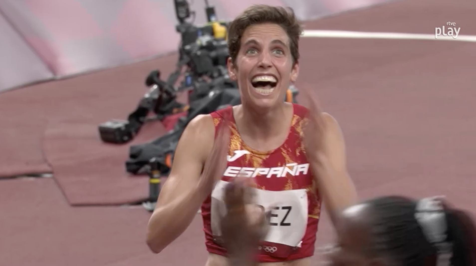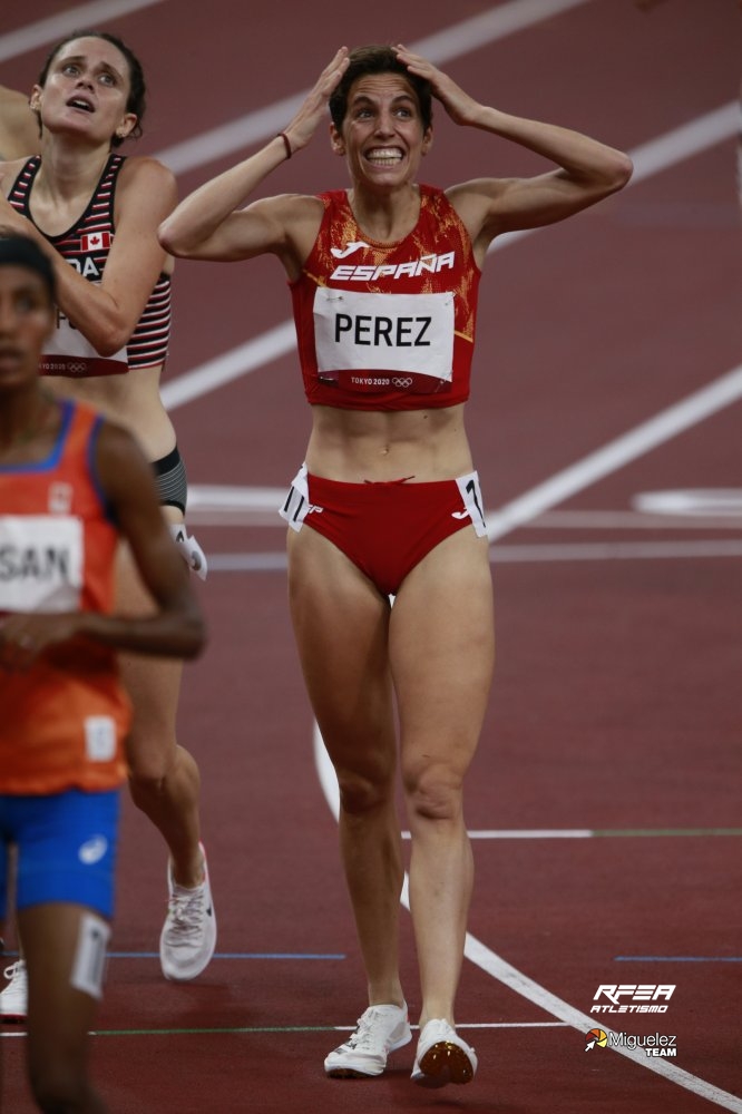 Marta Pérez está de dulce. Si antes de los Juegos Olímpicos de Tokio en una entrevista declaraba que su objetivo era meterse en la semifinal, se ha superado a ella misma para rebajar su marca personal en casi 3 puntos y poder clasificarse para la finalísima olímpica. Tras una gran carrera en la que se mantuvo siempre entre los 6 primeros puestos, logró el ansiado quinto puesto con el que disputar la final.