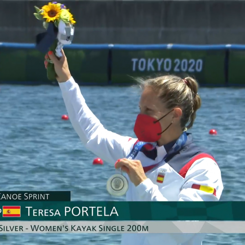 La piragüista gallega, que participaba en sus sextos Juegos Olímpicos, consigue a sus 39 años, su primera medalla olímpica, de plata, después de 5 diplomas olímpicos desde que debutara en Sydney 2000, 21 años antes.